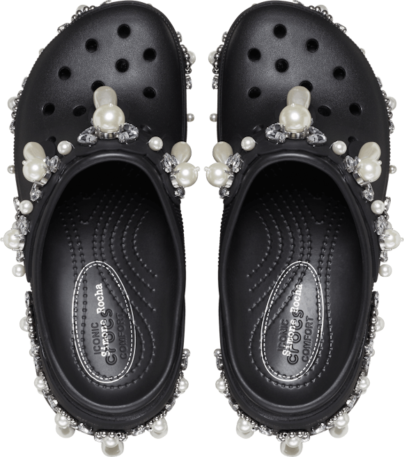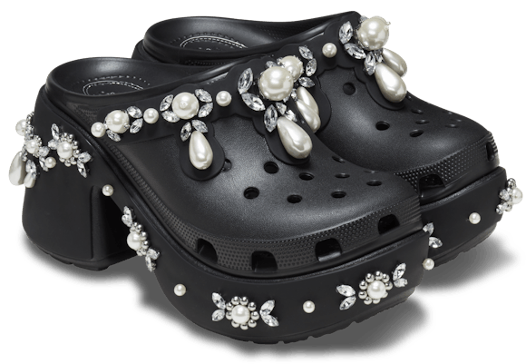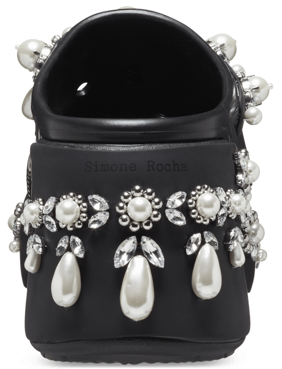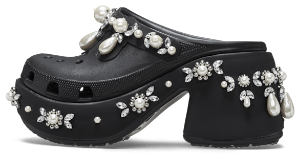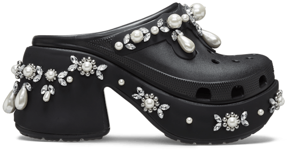 シモーネ・ロシャ X クロックス サイレン クロッグは、この高めのシルエットで豪華さを全開にしています。ドロップパールと輝くクリスタルがアッパーソールを装飾し、細部へのこだわりを見せています。クッション性のあるフットベッドが高級ファッションの世界への快適なステップを提供します。